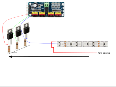 Schematic Yes.. I know this isn’t the right way to do it. It’s a way for us non-EE types to understand. NOTE: There's a 5V supply to the Nano and PCA9685, which is different than the 12V to the LEDs.
